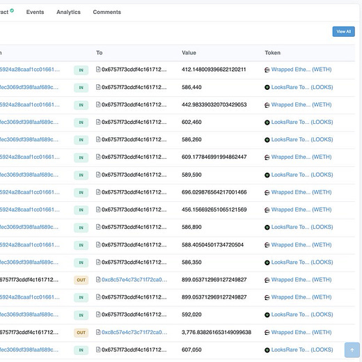 I started writing this due to the LooksRare drama happening on Twitter this week. If you’re out of the loop, LooksRare is an OpenSea competitor with a token that allows holders to share the fees. Some people got upset that the LooksRare team took some WETH from LooksRare rewards through Tornado Cash. It was a typical valentines day. I wanted to write a post about how nobody should have been surprised by this.